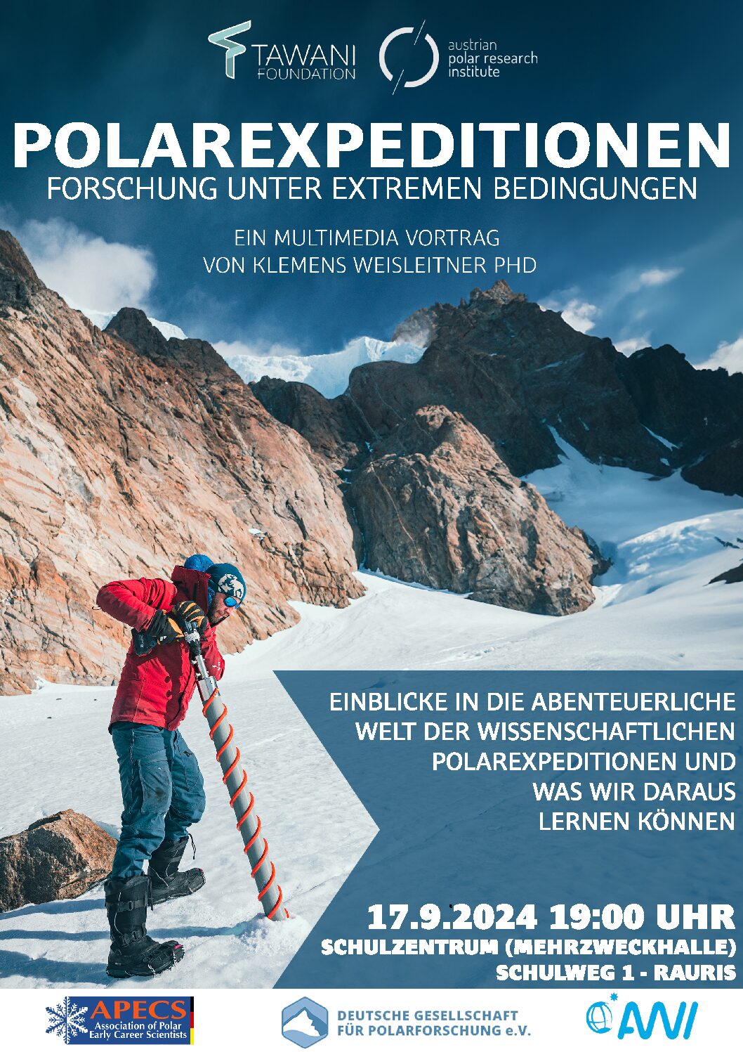 Die 29. Internationale Polartagung „Dynamic Poles and High Mountain Environments“ wird vom 16. bis 20. September 2024 im Mesnerhaus in Rauris, Österreich, stattfinden. Die von der Deutschen Gesellschaft für Polarforschung und dem Austrian Polar Research Institute (APRI) gemeinsam organisierte transdisziplinäre Veranstaltung bietet mit wissenschaftlichen Vorträgen und einer umfangreichen Postersession viel Raum für intensive Diskussionen für Polar- und Hochgebirgsinteressierte.