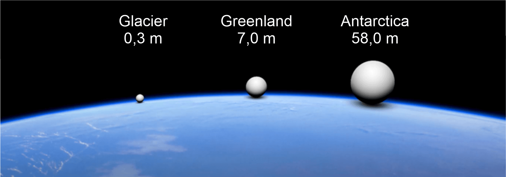 • Glacier: sea level contribution approx. 0.3 meters; sphere diameter: 68 km