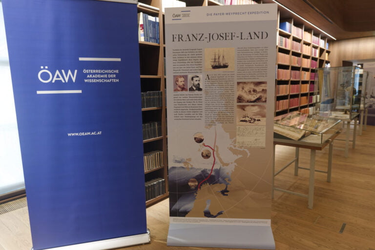 Vor 150 Jahren hat die österreichisch-ungarische Payer-Weyprecht Expedition (1872 – 1874) in die Nordpolregion Geschichte geschrieben: die Crew entdeckte einen Archipel, den die Expeditionsleiter zu Ehren des damaligen Kaisers „Franz-Josef-Land“ nannten. Im Rahmen der Ausstellung in der ÖAW beleuchtete Gertrude Saxinger die aktuellen wissenschaftlichen, gesellschaftlichen und politischen Herausforderungen in den arktischen Regionen.